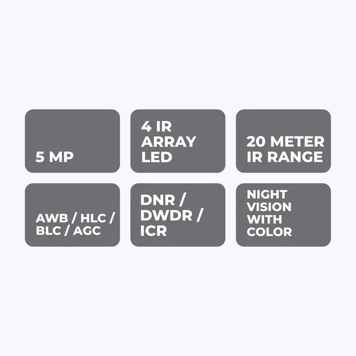 5MP Dome & Bullet CCTV Camera | Color Night Vision | Metal Body | 20–25M Range