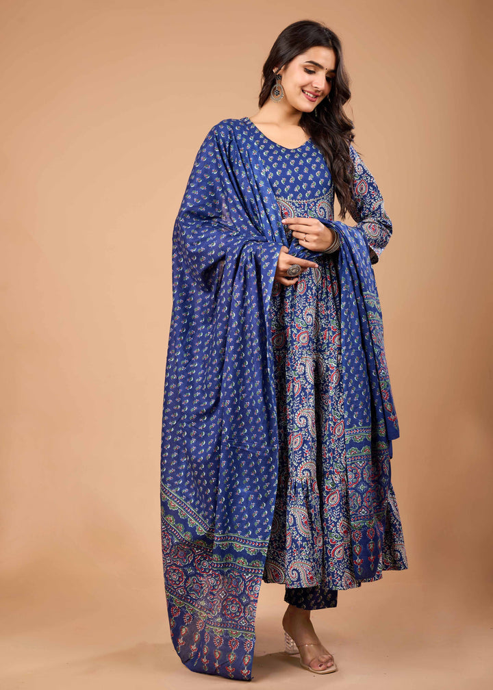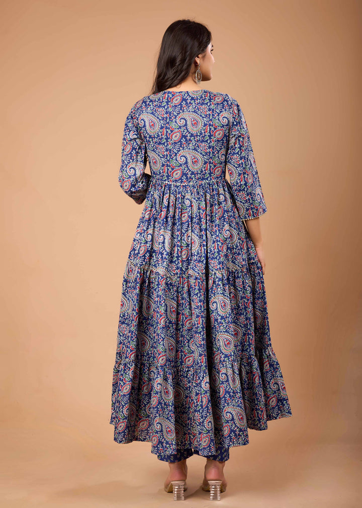 Proudly made in India, this Anarkali A-Line Suit Set blends traditional elegance with modern design, offering a chic and comfortable fit for any occasion.