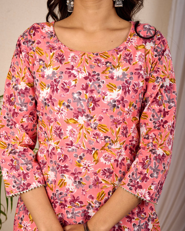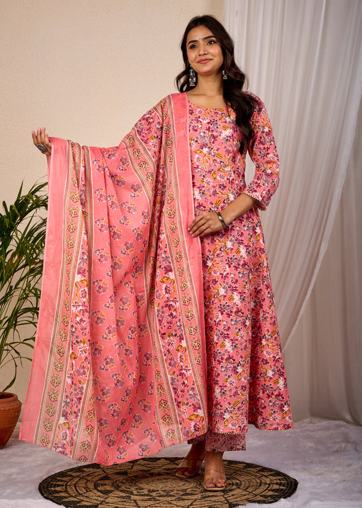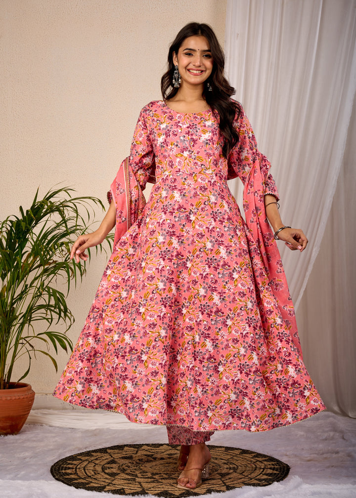 BALLON FLOWER HAND CRAFTED COTTON ANARKALI SUIT SET