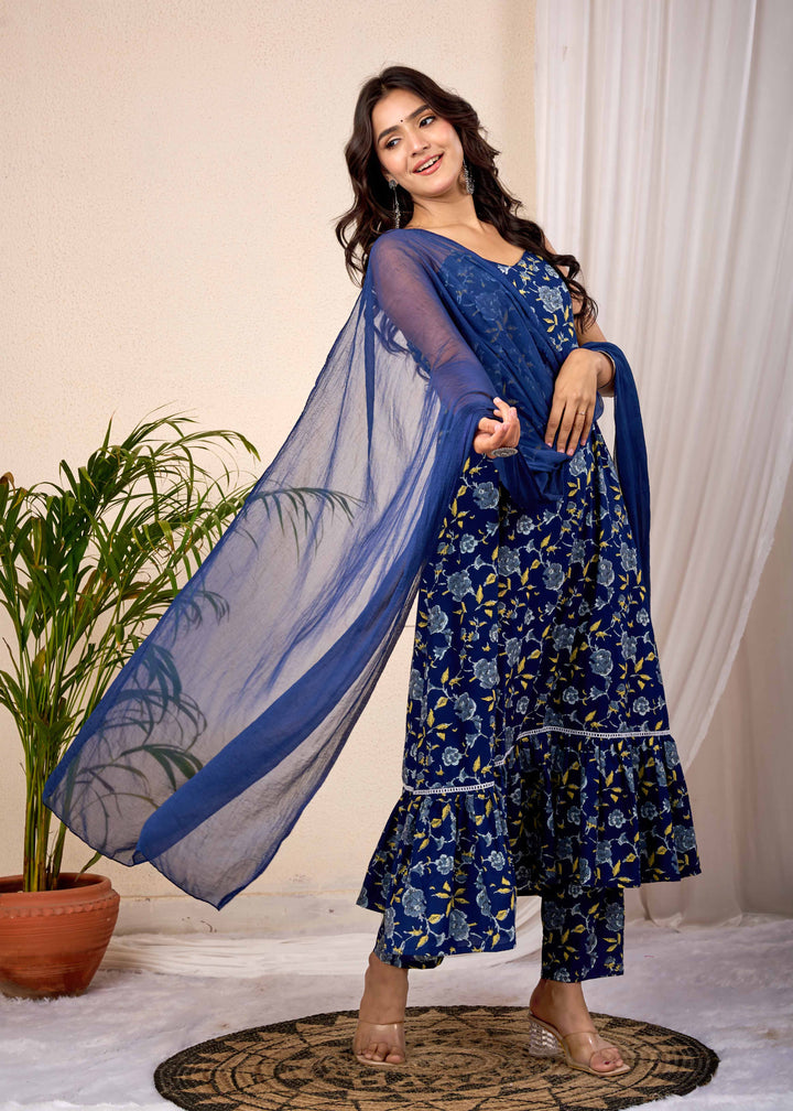 BLUE ORCHID HAND CRAFTED FLORAL COTTON SUIT SET