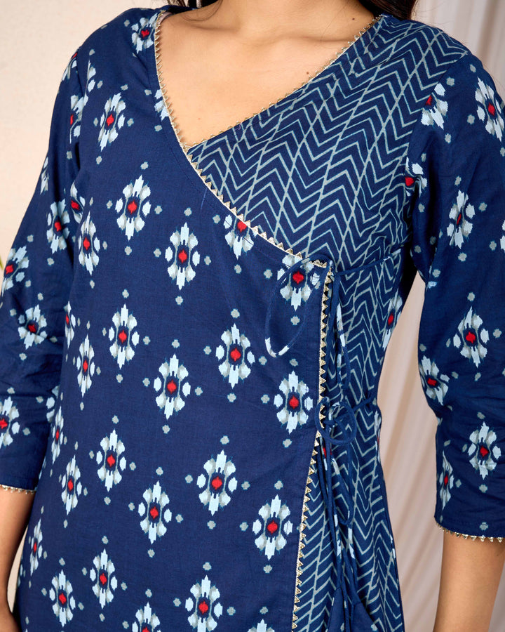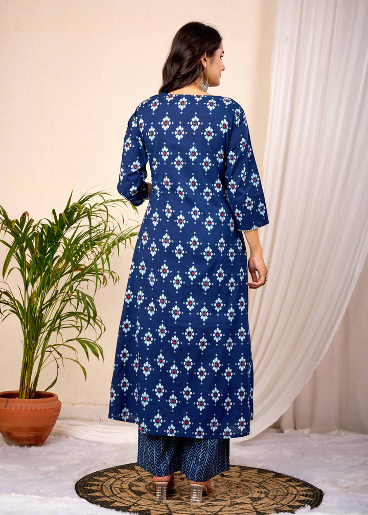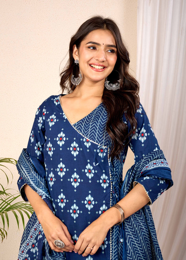 EMPIRE BLUE HAND CRAFTED ANGRAKHA COTTON SUIT SET