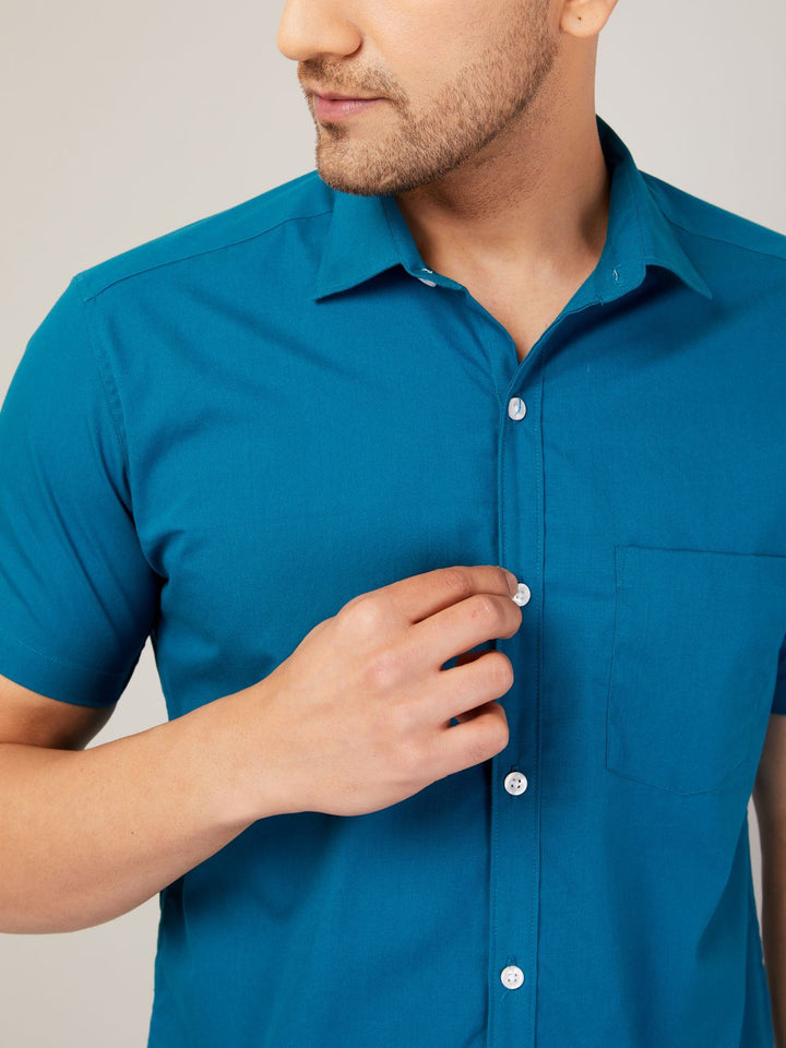 Louis Monarch Men Regular Fit Solid Airforce Spread Collar Casual Half Shirt