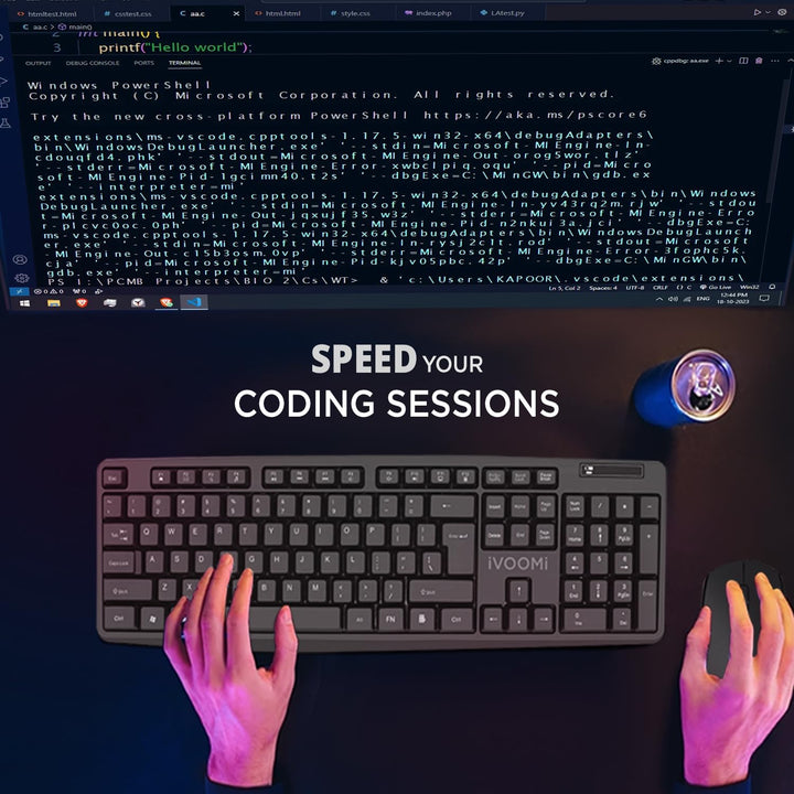 Upgrade your workspace with the iVOOMi Spice 2.4GHz Wireless Keyboard & Mouse Combo, crafted for smooth typing, precise navigation, and effortless productivity. With soft-touch keys, spill-resistant design, and a strong wireless connection, this combo is built to perform throughout long work or study sessions.